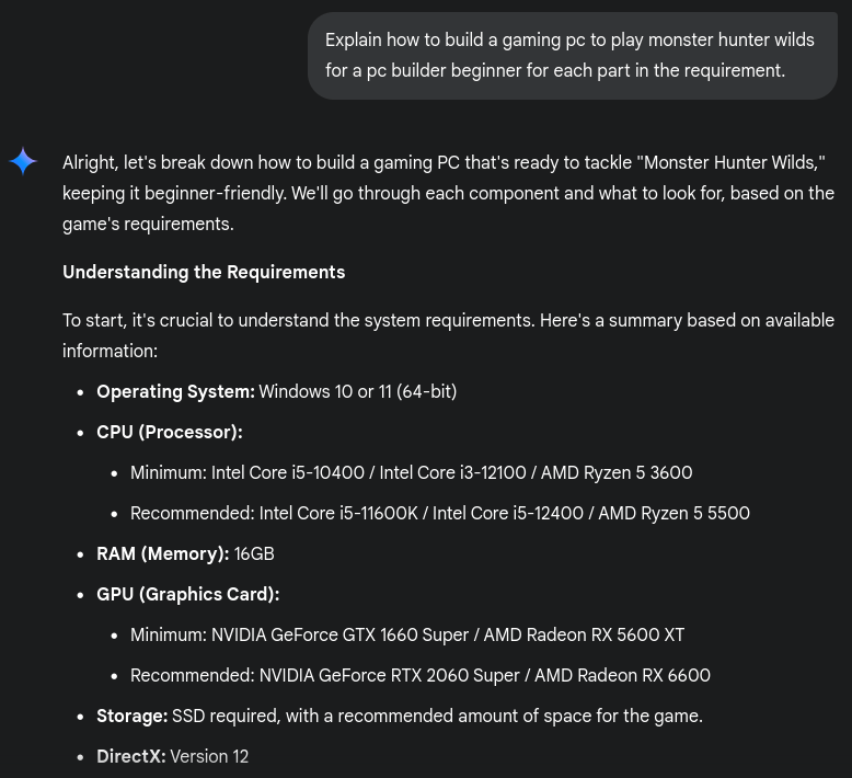 หากเป็นมือใหม่ที่ต้องการจัดคอมเล่นเกมเองครั้งแรกอาจจะยังไม่เข้าใจความต้องการของเกมหรืองานที่เราต้องการใช้ ในปัจจุบันมีเครื่องมือต่างๆ คอยช่วยเหลืออย่าง ChatGPT, Gemini, Deepseek และ AI Chat อื่นๆ ที่สะดวกใช้คอยตอบปัญหาที่เราไม่รู้ว่าจะเริ่มต้นค้นหาใน Google อย่างไร