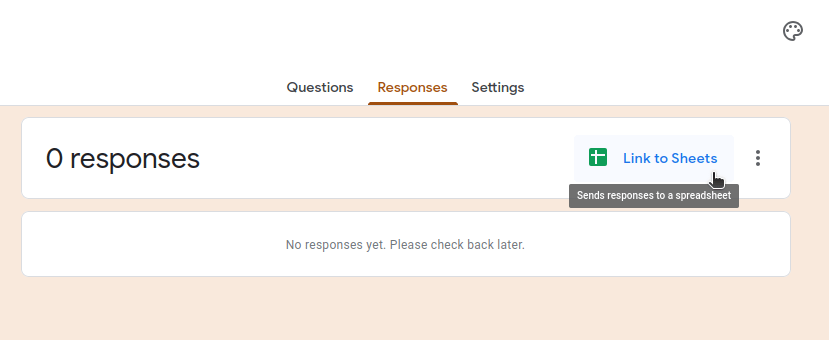 กดที่แท็บ Response เหนือ Form ที่เราทำ จากนั้นกดที่ Link to Sheets