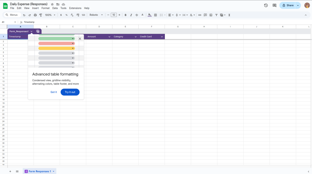 ระบบจะสร้าง spreadsheet ขึ้นมาใหม่พร้อม table เพื่อรอนำข้อมูลไปวิเคราะห์ได้ทันที