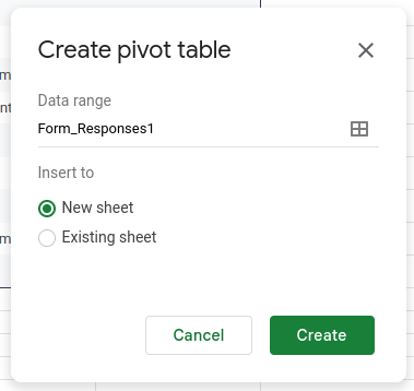 เลือกให้สร้างที่ sheet ใหม่ แล้วกด create เราจะได้ sheet ใหม่ให้มาหมุน data ตรวจสุขภาพการใช้เงินจากรายการที่เราบันทึกไว้ได้