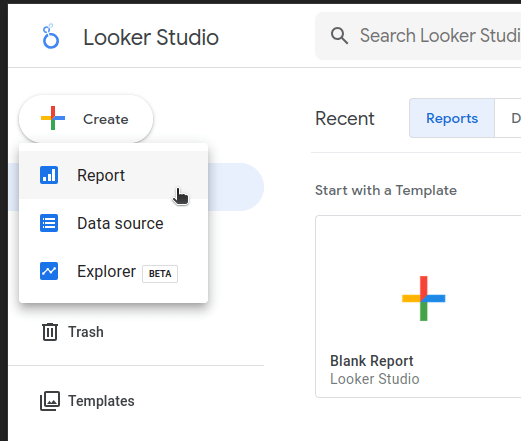 ถ้ายังไม่เคยใช้ ค้นหา Looker Studio ใน Search Engine ที่ชอบหรือกดที่ลิ้งค์นี้ ลงทะเบียนใช้งานด้วย Google Account ฟรีๆ แล้วเริ่มกันเลย